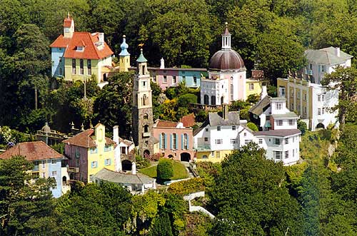 Portmeirion je oblikoval in zgradil Sir Clough Williams-Ellis, projekt pa je trajal 50 let (od 1925 do 1975). Mestece je oblikovano po vzoru na italijanske vasi in je na prvi pogled kar malček kičasto. Vendar pa sta učinek in atmosfera čudovita in skoraj pravljična in precej nostalgična. V bistvu je tako, kot bi izgradili permanentno “sceno” za film. Dandanašnji je Portmeirion v lasti dobrodelne fondacije in je bil dostikrat uporabljan za film in televizijo. Sir Williams-Ellis je zanikal trditve, da je oblika mesta narejena po vzoru na italijansko mestece Portofino, trdil je le, da je želel poudariti lepoto mediteranskega mesteca. V gradnji je uporabil tudi delčke uničenih stavb in dela mnogih drugih arhitektov. Portmeirion ima hiške, pub, kavarne, trgovine, grad, hotel… Je polno mediteranskega rastlinja kot so rododendroni, eksotičnih rastlin, gozdič po katerem se je možno sprehajati ali se peljati z malim vlakcem. Tam so fantastična drevesa, skrite klopice, jezerček… V gozdiču najdem tudi drevesa, na katerih raste denar. Pravzaprav so to drevesa želja in vsak kovanec, ki ga nekdo zabije v deblo, pomeni eno željo. To navado poznajo že od 18. stoletja in v deblih se najdejo tudi kovanci, ki so stari več sto let. Nekakšen ekvivalent metanja kovancev v vodo ali vodnjak, ki ga bolj poznamo pri nas. Navdušilo me je tudi, kako domače so živali (ne samo v Portmeirionu, tudi drugje). Divji zajček, ki je nekaj prežvekoval ob poti, se ni niti malo preplašil, ko sem prišla mimo in je celo dovolil, da ga dobri dve minuti božam. Spoznala pa sem tudi malo, predrzno in zelo sladkosnedno ptičico, ki je meni nič, tebi nič, priletela na krožnik in kljunčkala po tortici.